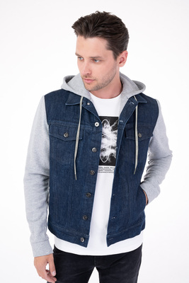 Sportovní bunda je vyhotovena z kombinace dvou materiálu, denimu a výplně, z čisté bavlny. Bunda je zapínána na kovové, jeansové knoflíky. Tento typ jeansové bundy je vhodným doplňkem ke sportovním aktivitám a je dobře kombinovatelná s jeansy, nebo tepláky.