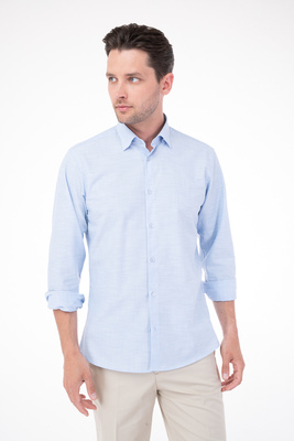 Modrá košile z čisté bavlny od italského výrobce materiálů Albini. Košile je ušitá ve standardním střihu pro větší pohodlí. Doporučujeme pro formální příležitosti.