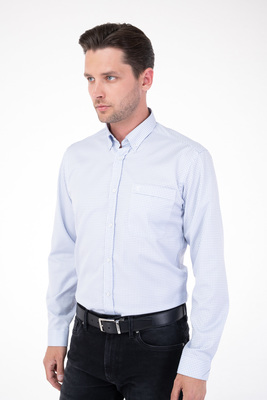 Košile regulérního střihu z čisté bavlny, s jednou nakládanou kapsou na předním díle. Kapsa je zapínána na jeden knoflík a je doplněna výšivkou loga.
