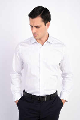 Bílo modrá košile z čisté bavlny od rakouského výrobce materiálů Getzner. Košile je ušitá ve volném střihu pro větší pohodlí. Doporučujeme pro formální příležitosti.