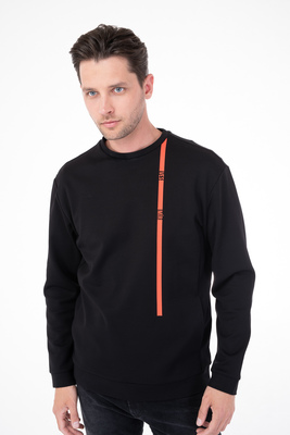 Černo oranžová mikina z čisté bavlny. Mikina je ušitá ve standardním střihu pro větší pohodlí. Doporučujeme pro neformální příležitosti.