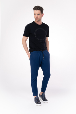 Modré tepláky ze směsové bavlny. Tepláky jsou ušité ve standardním střihu pro větší pohodlí. Doporučujeme pro volnočasové příležitosti.