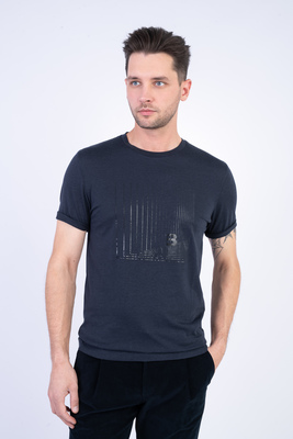 Modré triko ze směsové bavlny. Triko je ušité ve standardním střihu pro větší pohodlí. Doporučujeme pro neformální příležitosti.