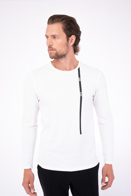 Bílo černé triko z bavlny s příměsí elastanu. Triko je ušité ve standardním střihu pro větší pohodlí. Doporučujeme pro neformální příležitosti.