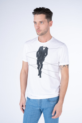Bílo černé triko ze směsové bavlny. Triko je ušité ve standardním střihu pro větší pohodlí. Doporučujeme pro neformální příležitosti.