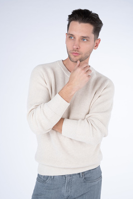 Béžový svetr z čisté bavlny. Svetr je ušitý ve standardním střihu pro větší pohodlí. Doporučujeme pro neformální příležitosti.