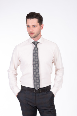 Béžová košile ze směsové bavlny s příměsí elastanu od italského výrobce materiálů Albini. Košile je ušitá ve standardním střihu pro větší pohodlí. Doporučujeme pro formální příležitosti.