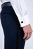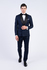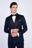 Základ tohoto tmavě modrého obleku tvoří dvouřadové sako se širší lesklou klopou, střiženou do šálového límce. Sako je zapínané na jeden knoflík. Kalhoty se širokým lampasem dotvoří celkový vzhled obleku.