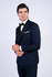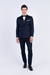 Základ tohoto tmavě modrého obleku tvoří dvouřadové, čtyř knoflíkové sako se širší lesklou klopou, střiženou do špicfazony. Kalhoty, které mají užší lampas v bočním švu, dotvoří celkový vzhled obleku.