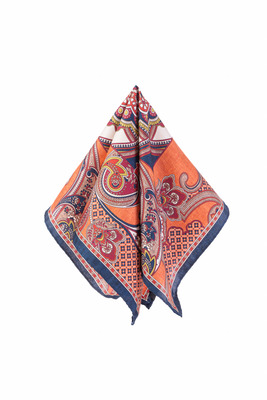 Oranžovo modrý kapesníček z čistého hedvábí. Rozměry kapesníčku jsou 32 x 32 cm. Doporučujeme pro formální příležitosti.