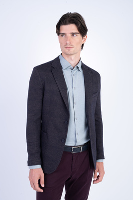 Hnědo černé sako z vlny a směsové bavlny od italského výrobce materiálů Dondi. Sako je ušité v přiléhavém střihu, který kopíruje postavu. Doporučujeme pro neformální příležitosti.