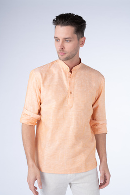 Oranžová košile ze lnu a bavlny od rakouského výrobce materiálů Getzner. Košile je ušitá ve volném střihu pro větší pohodlí. Doporučujeme pro neformální příležitosti.