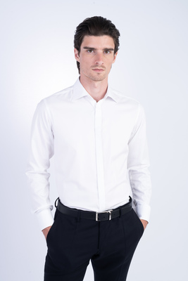 Bílá košile z čisté bavlny od italského výrobce materiálů Albini. Tkanina Yoga Twill Fresh je měkká, prodyšná bavlněná látka s přirozenou pružností, která zajistí pohodlí po celý den. Ideální pro business košile, které zůstanou upravené i při aktivním nošení. Košile je ušitá ve standardním střihu pro větší pohodlí. Doporučujeme pro slavnostní příležitosti.