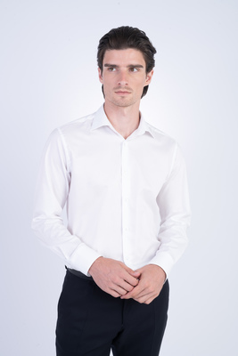 Bílá košile z čisté bavlny od italského výrobce materiálů Albini. Tkanina Yoga Twill Fresh je měkká, prodyšná bavlněná látka s přirozenou pružností, která zajistí pohodlí po celý den. Ideální pro business košile, které zůstanou upravené i při aktivním nošení. Košile je ušitá ve volném střihu pro větší pohodlí. Doporučujeme pro formální příležitosti.