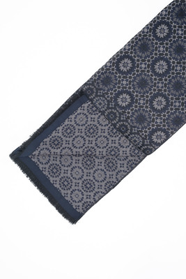 Šedo modrá šála ze směsové vlny. Rozměry jsou 180 x 40 cm. Doporučujeme pro neformální příležitosti.