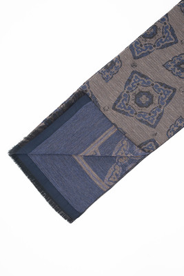 Modro hnědá šála ze směsové vlny. Rozměry jsou 180 x 40 cm. Doporučujeme pro formální příležitosti.
