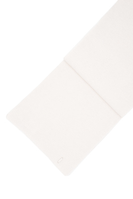 Béžová šála z vlny a kašmíru. Rozměry jsou 180 x 24 cm. Doporučujeme pro neformální příležitosti.