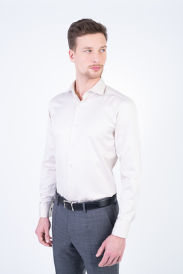 Béžová košile z čisté bavlny od rakouského výrobce materiálů Getzner. Košile je ušitá ve standardním střihu pro větší pohodlí. Doporučujeme pro formální příležitosti.