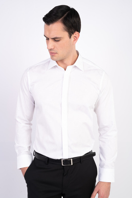 Bílá košile z čisté bavlny od italského výrobce materiálů Albini. Košile je ušitá ve standardním střihu pro větší pohodlí. Doporučujeme pro slavnostní příležitosti.
