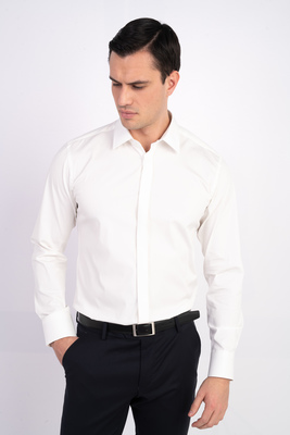 Champagne košile ze směsové bavlny s příměsí elastanu od italského výrobce materiálů Albini. Košile je ušitá v přiléhavém střihu, který kopíruje postavu. Doporučujeme pro slavnostní příležitosti.