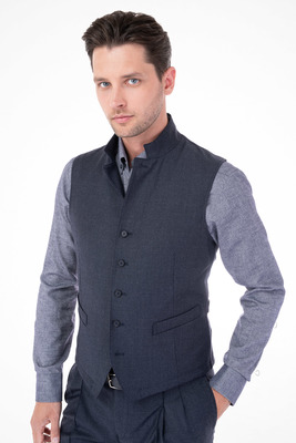 Tmavě šedá vesta ze směsové vlny s příměsí elastanu. Vesta je ušitá ve standardním střihu pro větší pohodlí. Doporučujeme pro neformální příležitosti.