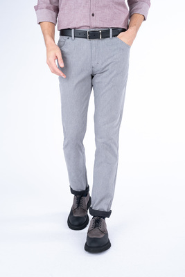 Šedé kalhoty z bavlny s příměsí elastanu od italského výrobce materiálů Sondrio. Kalhoty jsou ušité v přiléhavém střihu, který kopíruje postavu. Doporučujeme pro neformální příležitosti.