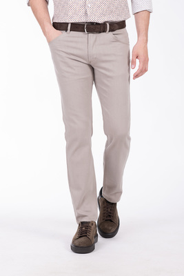 Béžové jeansy z bavlny s příměsí elastanu od italského výrobce materiálů Sondrio. Jeansy jsou ušité v přiléhavém střihu, který kopíruje postavu. Doporučujeme pro neformální příležitosti.