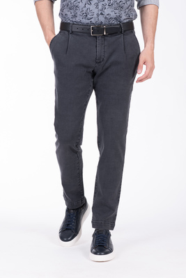 Šedé kalhoty z bavlny s příměsí elastanu. Kalhoty jsou ušité ve standardním střihu pro větší pohodlí. Doporučujeme pro neformální příležitosti.