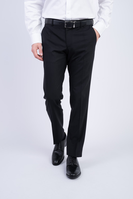Černé kalhoty z vlny s příměsí elastanu. Kalhoty jsou ušité ve standardním střihu pro větší pohodlí. Doporučujeme pro formální příležitosti.