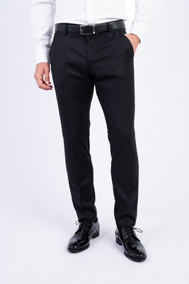 Černé kalhoty z vlny s příměsí elastanu od italského výrobce materiálů Reda Flexo. Materiál s vynikající pružností z vláken ROICA™, které má „natahovací“ a regenerační vlastnosti. Kalhoty jsou ušité ve standardním střihu pro větší pohodlí. Doporučujeme pro slavnostní příležitosti.