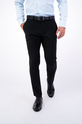Černé kalhoty ze směsové vlny s příměsí elastanu. Kalhoty jsou ušité v přiléhavém střihu, který kopíruje postavu. Doporučujeme pro neformální příležitosti.