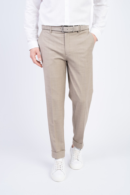 Světle hnědé kalhoty ze směsové vlny s příměsí elastanu. Kalhoty jsou ušité v uvolněném střihu pro větší pohodlí. Doporučujeme pro neformální příležitosti.