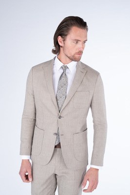 Béžové sako z vlny a lnu s příměsí elastanu. Sako je ušité v přiléhavém střihu, který kopíruje postavu. Doporučujeme pro formální příležitosti.