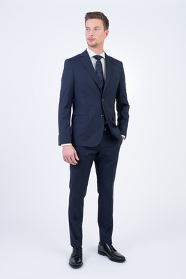 Modrý polopodšitý oblek z vlny s příměsí elastanu od italského výrobce materiálů Reda Active. Oblek je ušitý v přiléhavém střihu, který kopíruje postavu. Doporučujeme pro formální příležitosti.