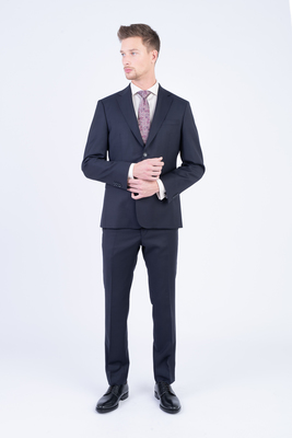 Tmavě modrý oblek z čisté vlny od italského výrobce materiálů Marzotto. Oblek je ušitý ve standardním střihu pro větší pohodlí. Doporučujeme pro formální příležitosti.