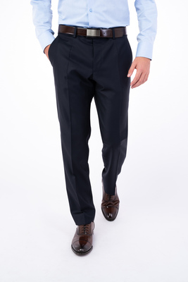 Tmavě modré kalhoty z čisté vlny od italského výrobce materiálů Vitale Barberis Canonico. Kalhoty jsou ušité ve volném střihu pro větší pohodlí. Doporučujeme pro formální příležitosti.