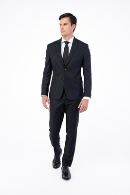 Černý oblek z čisté vlny od italského výrobce materiálů Vitale Barberis Canonico. Oblek je ušitý ve standardním střihu pro větší pohodlí. Doporučujeme pro formální příležitosti.