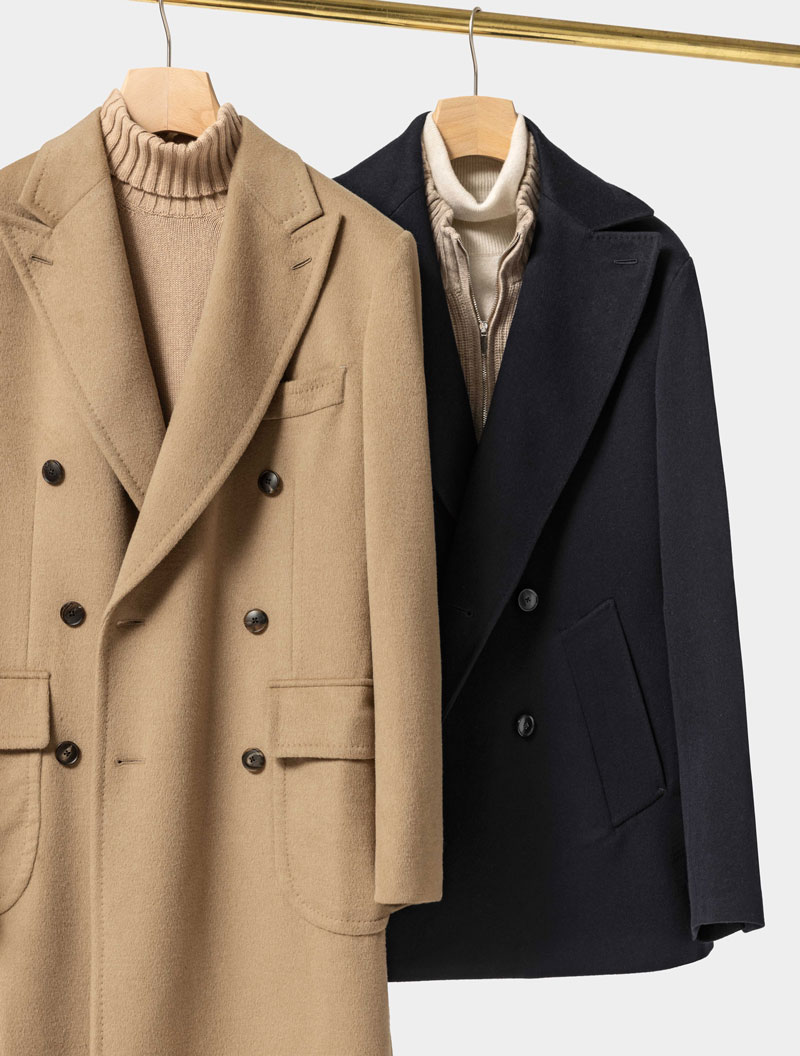 Naše pláště a kabáty na míru snoubí styl a praktičnost. Formální kabáty a méně formální pláště s přirozenou siluetou, lepší splývavostí a novým střihem zajišťujícím volný pohyb bez námahy. Kromě toho máte velkou variabilitu při výběru vrchového materiálu, můžete zvolit 100% australskou merino vlnu, 100% kašmír z Mongolska nebo funkční merino vlnu s membránou.